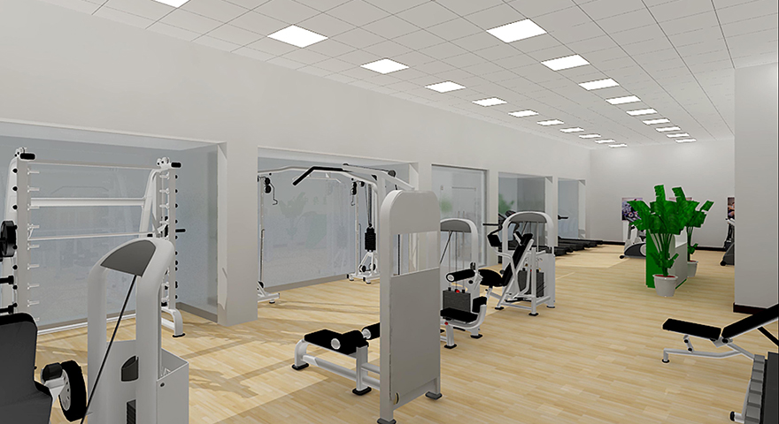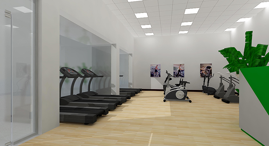 健身房休閑娛樂區健身器材效果圖圖示
